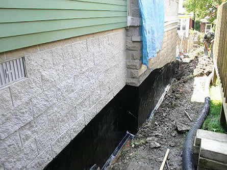 Whenever possible, it’s best to work from the exterior to waterproof your foundation to ensure the wall does not erode and remains structurally sound. When your wall is made of cinder-block, stone, bricks or aging concrete the exterior method is also recommended. And of course if the leak in the foundation you’re experiencing is serious and cannot be properly managed with weeping tiles from the inside of the home, external waterproofing is the sensible option. Exterior waterproofing is a permanent, final solution to your basement waterproofing problems and should be your option when budget and logistics allow for it.